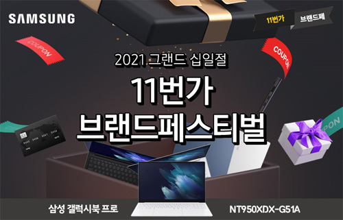 유니씨앤씨는 2021 그랜드 십일절 마지막 날을 맞아 15.6인치 대화면 AMOLED 디스플레이와 지포스 외장그래픽이 탑재된 삼성 갤럭시북 프로 NT950XDX-G51A 모델을 대상으로 최대 42만원 중복 할인과 함께 푸짐한 혜택이 주어지는 ‘브랜드페스티벌’ 프로모션을 2021년 11월 11일 단 하루 동안 11번가를 통하여 단독 진행한다.