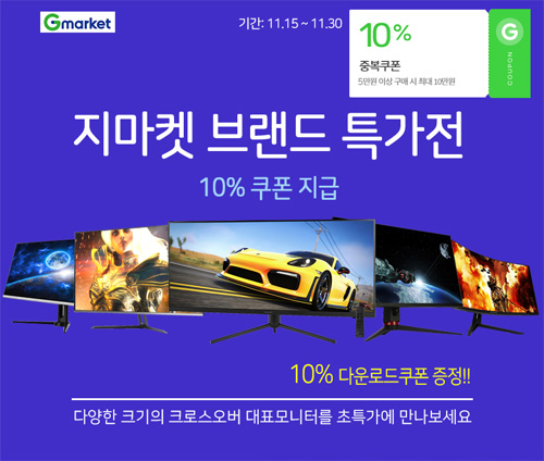 크로스오버는 자사의인기 게이밍, 고해상도 모니터들을 대상으로 지마켓 브랜드 특가전을 펼친다.