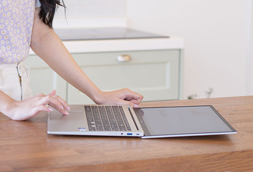 `삼성 갤럭시북` NT750XDA-X71A는 15.6인치 광시야각 디스플레이가 탑재되 상하좌우 어느 각도에서나 왜곡 없는 선명한 화면을 제공한다. 또 빛 반사가 적은 비반사 패널이 적용돼 장시간 작업 시에도 눈이 편안하다. 이 밖에도 180도 회전하는 힌지 덕분에 원하는 화면 각도 세팅이 가능하다.