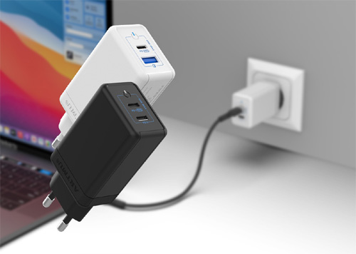 이번에 출시한 질화갈륨 듀얼 초고속충전기(모델:GC710)는 USB-PD((USB-Power Delivery) 1포트와 퀵차지3.0 1포트로 구성 최대 65W를 출력을 지원하며, 2포트 모두 USB-PD를 지원하는(모델:GC810)으로 설계됐다. 단일충전시 최대 65W의 고출력으로 최신 노트북(갤럭시북프로, M1맥북외)을 고속충전 가능하며, PPS(Programmable Power Supply)적용으로 45W이상 최신 태블릿(갤럭시탭S7, 아이패드프로외), 스마트폰까지도 동시 충전 지원한다. 특히, 질화갈륨(GaN)소재의 충전기는 기존의 실리콘(Si)충전기보다 발열에 강하며, 전력모듈에 필요한 냉각장치를 최소화할 수 있어 충전기의 소형화 경량화를 가능케 한다. 전력을 75% 덜소비해 높은 효율을 자랑하며 고속 충전 성능도 우수하다.