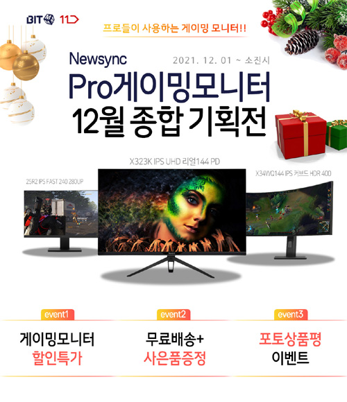비트엠은 24형부터 34형까지 자사의 프로 게이밍 모니터 7종을 대상으로 11번가 모니터 초특가 기획전을 진행한다.