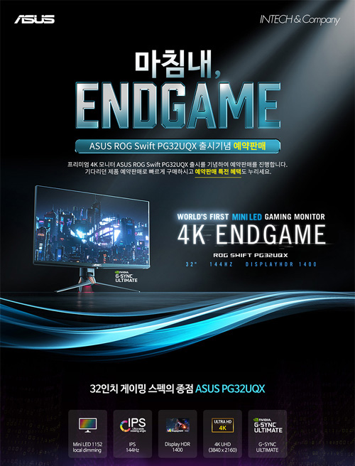 인텍앤컴퍼니는 ASUS ROG Swift PG32UQX UHD 4K HDR 1400 모니터 출시 기념으로 예약 구매자에게 사은품을 증정하는 이벤트를 진행한다.