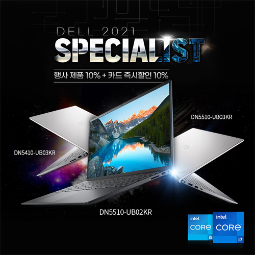 행사 모델인 ‘인스피론 5510 DN5510-UB03KR’은 15형으로 외부 충격에 강한 알루미늄 소재를 사용하였으며 공정 기반의 최신 11세대 인텔 i5-11300H CPU와 내장그래픽 인텔 Iris Xe, SSD 256GB, 메모리 8GB, 디스플레이는 FHD(1920x1080) 광시야각이 탑재되어 있다. 그 외에 SD카드리더, 지문인식, PD 충전, 드롭힌지로 원활한 타이핑 및 강력한 냉각 기능 유지로 사용자의 편의를 더한 제품이다. 인텔 Iris Xe 그래픽은 새로운 저전력 AI 매트릭스 엔진을 통해 그래픽 작업은 물론 4K 파일 추출, 인코딩도 가능하다.