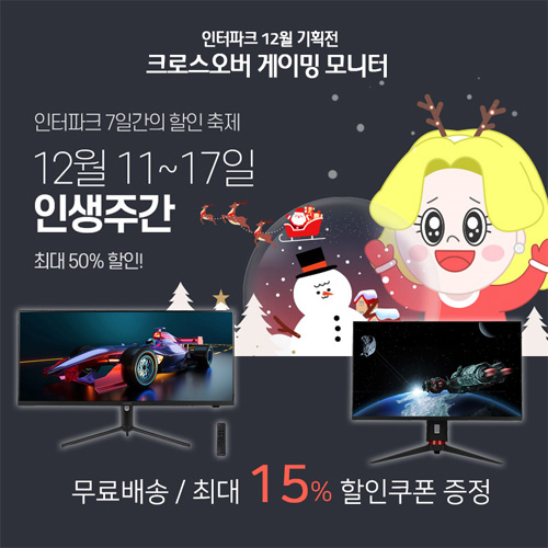 크로스오버는 자사의인기 게이밍, 고해상도 및 대화면 모니터들을대상으로 12월 인터파크 인생주간(인터파크로 생활하는 주간) 특가전을 펼친다.