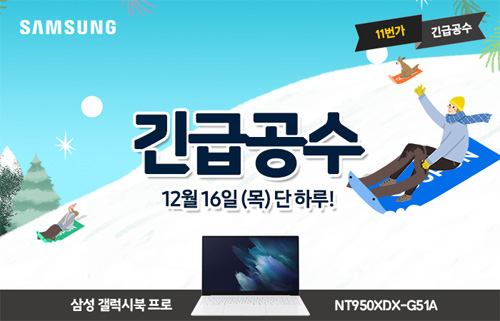 유니씨앤씨는 15.6인치 대화면 AMOLED 디스플레이와 지포스 외장그래픽이 탑재된 삼성 갤럭시북 프로 NT950XDX-G51A 모델을 대상으로 최대 22만원 중복 할인과 함께 푸짐한 혜택이 주어지는 ‘긴급공수’ 프로모션을 2021년 12월 16일 단 하루 11번가를 통하여 단독 진행한다.