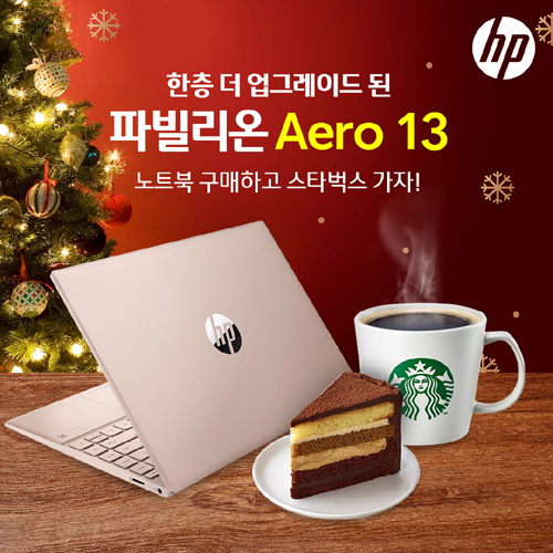 현재 에스라이즈에서는 ‘파빌리온 Aero13’ 구매 후 인스타 팔로우와 좋아요를 누른 모든 구매자에게 스타벅스 기프티콘을 증정하고 있다. (제고 소진시 종료)