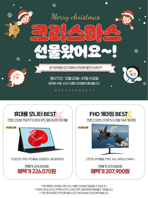 크로스오버는 자사의 인기 게이밍 모니터 20종을 대상으로 위메프 12월 월간가전 특가전을 실시한다.