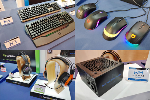 마이크로닉스는 자사 디자인센터가 개발을 주도한 게이밍 브랜드, 메카(MECHA)·모프(MORPH)·워프(WARP) 외에도 고효율 파워서플라이 브랜드 위즈맥스(WIZMAX), 워프 실드(WARP SHIELD) M.2 SSD 방열판 등을 전면에 내세웠다. 약 30여 종에 달하는 게이밍 기어 및 주변기기는 전 세계 바이어의 눈길을 사로잡았다.