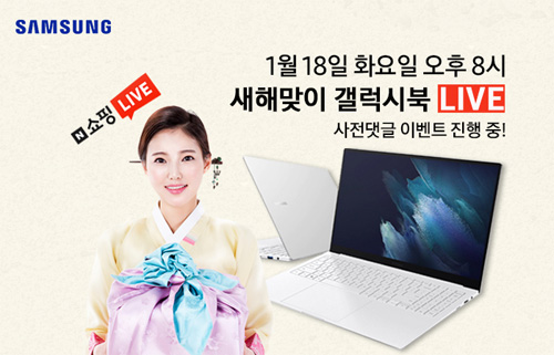 라이브 방송에서는 초슬림 초경량 디자인과 AMOLED 디스플레이를 탑재한 삼성 갤럭시북 프로와 고화질 SUPER AMOLED 노트북으로 그립감이 뛰어난 S펜이 탑재된 갤럭시북 프로360, Intel 하이브리드 기술이 적용된 레이크필드 CPU가 탑재되어 PC의 기능성에 모바일의 휴대성을 겸비한 삼성 갤럭시북 S가 선보인다. 또한, 라이브 방송 중 구매 시 최대 70만원 할인 혜택과 노트북 파우치 가방, 삼성 블루투스 마우스가 사은품으로 증정된다. 또한 스타벅스 아메리카노 기프티콘이 증정되는 사전 응원 이벤트가 진행된다.