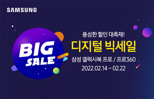 유니씨앤씨는 2022년 봄을 맞아 15.6인치 AMOLED 디스플레이 탑재와 초슬림 초경량 디자인으로 뛰어난 휴대성을 자랑하는 삼성 갤럭시북 프로 NT950XDY-A51A 모델을 대상으로 최대 42만원 중복 할인 및 푸짐한 혜택이 증정되는 ‘디지털 빅세일’ 프로모션을 2022년 2월 14일부터 2월 22일가지 G마켓을 통하여 단독 진행한다.