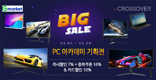 크로스오버는 자사의 인기 포터블, 게이밍, 고해상도 모니터들을 대상으로 지마켓 PC 아카데미 모니터 특가전을 펼친다.