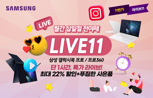 유니씨앤씨는 다가오는 월간 십일절을 맞이하여 AMOLED 디스플레이와 초슬림 초경량 디자인으로 뛰어난 휴대성을 자랑하는 삼성 갤럭시북 프로 / 프로360을 대상으로 최대 22% 중복할인과 SSD 더블 업그레이드가 증정되는 ‘삼성 갤럭시북 십일절 전야제’ LIVE11 방송을 진행한다. 본 방송은 2022년 3월 10일 21시부터 단 1시간 동안 11번가 모바일 앱을 통하여 시청할 수 있다.