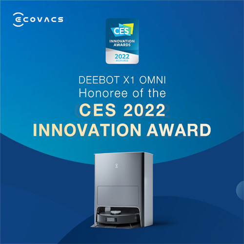 에코백스의 신제품 물걸레 로봇청소기 ‘에코백스 X1 옴니(X1 OMNI)’가 CES 2022에서 로봇청소기 부문 ‘최고혁신상’을 수상했다.