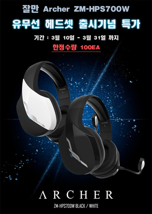 한편 잘만은 커버 디자인의 색상에 따라 블랙과 화이트 버전으로 구분되는 Archer ZM-HPS700W의 출시를 기념한 출시특가 행사를 준비했다. 3월 31일까지 진행되는 이번 행사에서 기준가 79,900원인 ZM-HPS700W 블랙과 화이트는 할인된 가격 59,900원에 한정수량 100ea까지 판매 진행된다.