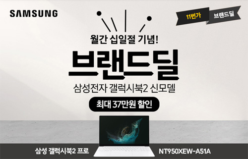 유니씨앤씨는 갤럭시북2 런칭 첫 월간 십일절을 맞아 15.6인치 AMOLED 디스플레이 탑재와 초슬림 초경량 디자인으로 뛰어난 휴대성을 자랑하는 삼성 갤럭시북2 프로 NT950XEW-A51A 모델을 대상으로 최대 37만원 중복 할인과 함께 푸짐한 혜택이 증정되는 ‘브랜드딜’ 프로모션을 2022년 4월 11일 단 하루 11번가를 통하여 단독 진행한다.