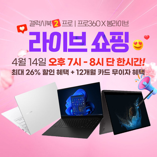 쇼핑 라이브 방송 진행 1시간 동안 갤럭시북2 프로 360(NT950QEW-A51A)와 갤럭시북2 프로 15형(NT950XEE-X71A), 갤럭시북2 프로13형(NT930XEW-A51A) 구매 시 방송 특별 할인 최대 24만원과 N PAY 포인트 최대 23만 적립 혜택과 카드 무이자 혜택까지 지원한다.