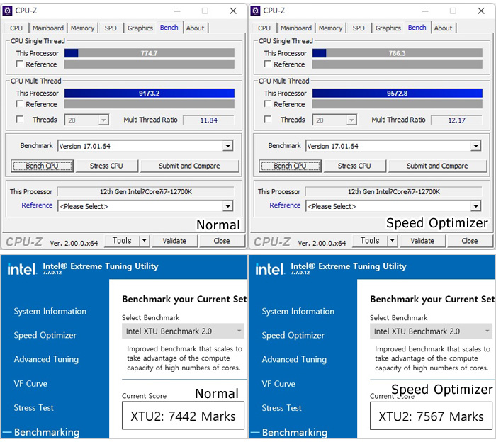 그렇다면 벤치마크 테스트를 통해 성능향상이 이루어 지는지 확인해 보도록 하자. 상단의 사진은 오버클럭 이전과 이후 벤치마크 프로그램을 실행한 모습으로 성능이 높아진 것을 확인할 수 있다. 안정성에 문제가 발생하지 않으면서도 더 높은 성능으로 PC를 사용하고 싶다면 좋은 대안이 될 것이다.