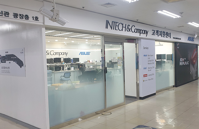 전자랜드 신관 광장측에 각 제조사의 A/S 센터가 모여 있는데 그중 1호에 큰 공간으로 A/S 센터를 운영하고 있어 쉽게 찾을 수 있을 것이다. 인텍앤컴퍼니 역시 평일 오전 9:30~오후 5:00까지 운영되며 서비스 절차는 (홈페이지) 링크를 참조하기 바란다.