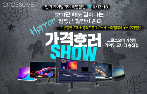 크로스오버는 자사의 인기 포터블, 게이밍, 고해상도 및 대화면 모니터들을 대상으로 6월 지마켓 글로벌 가격호러쇼 특가전을 펼친다고 밝혔다.