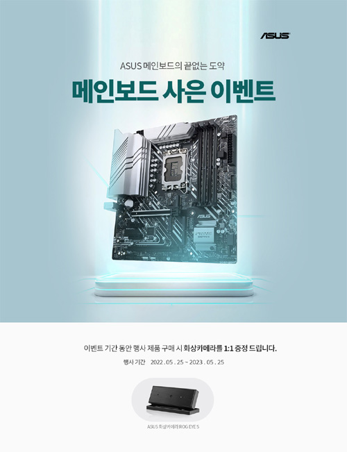 코잇은 ASUS PRIME Z690M-PLUS D4 메인보드를 구매하면 ROG EYE S 화상카메라를 증정하는 행사를 진행한다고 밝혔다.