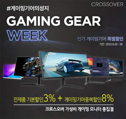 크로스오버는 자사의 인기 빅포터블, 게이밍, 고해상도 모니터들을 대상으로 11번가 6월 게이밍기어 위크 특가전을 펼친다.