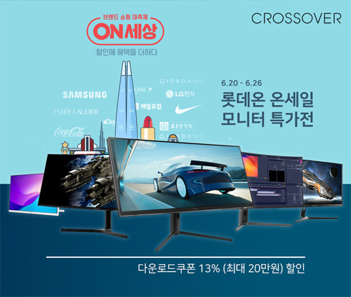 크로스오버는 자사의 인기 게이밍 모니터 91종을 대상으로 롯데온 6월 온세일 특가 할인전을 진행한다고 밝혔다.