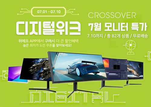 크로스오버는 자사의인기 게이밍 모니터 82종을 대상으로 위메프 7월 디지털위크 특가전을 실시한다고 밝혔다.