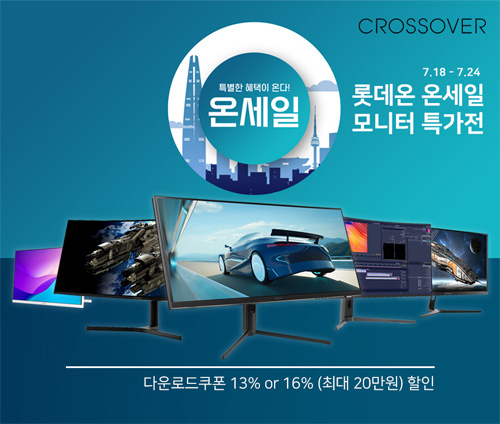 크로스오버는 자사의 인기 게이밍 모니터 97종을 대상으로 롯데온 7월 온세일 특가 할인전을 진행한다고 밝혔다.