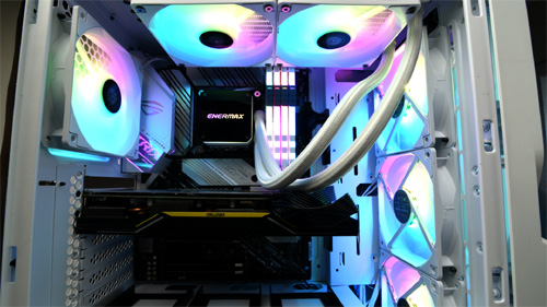 HF120 ARGB는 에너맥스 베스트셀러 LIQMAX III 수냉쿨러에 적용된 쿨링팬과 동일한 제품으로 강력한 72.1CFM의 풍량과 1.98mm H2O의 풍압을 통해 데스크탑 PC 내부 열을 효과적으로 제어할 수 있도록 설계되었다. CPU 온도에 맞춰 팬 속도를 자동으로 조절하는 PWM(Pulse Width Modulation, 펄스 폭 변조) 기능이 탑재된 해당 제품은 사용 환경에 따라 최소 500RPM부터 1,600RPM까지 팬 속도를 제어할 수 있어 정숙하면서도 강력한 쿨링 퍼포먼스를 제공한다.