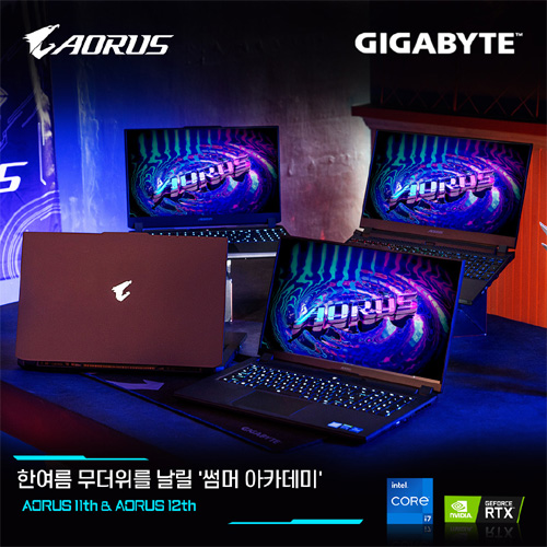기가바이트의 어로스는 프리미엄 게이밍 노트북 답게 안정적이면서 높은 퍼포먼스를 제공하는 제품이다. 이번 행사에 참여하는 AORUS 17G XD, AORUS 17G KD, AORUS 15P XD, AORUS 15P KD, AORUS 5 SE4 제품 모두 인텔 CPU와 엔비디아 지포스 RTX30시리즈의 탑재로 고사양 게임을 안정적이면서 원활하게 즐길 수 있다. 어로스 게이밍 노트북은 얇은 배젤의 적용으로 스크린대 바디 비율을 최대화하여 외형 크기는 한치 수 아래 모델과 동일할 정도로 높은 휴대성을 자랑한다.
