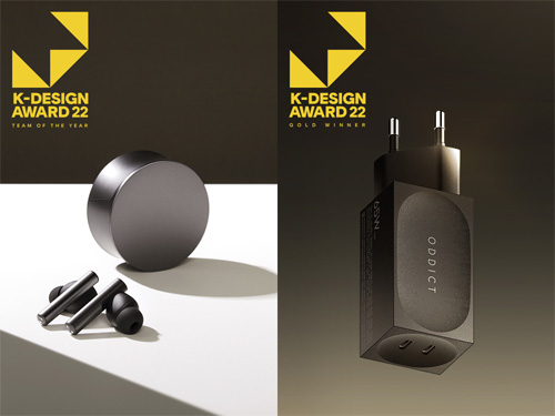 ‘GOLD WINNER(골드 위너)’를 수상한 고속충전어댑터 ‘DOT(닷)’은 ‘오딕트’의 라이프스타일 기기로 장식적인 요소를 덜어내 최소한의 조형으로 공간에 잘 어우러지는 오브제로 디자인됐다. 이 제품은 PD(Power Delivery) 충전방식으로 최대 65W 출력이 가능하며, 두 개의 USB-C 포트로 아이폰, 갤럭시 등과 맥북이나 삼성/LG 노트북을 동시에 충전할 수 있다. 또한 3세대 반도체 소재인 GaN(질화갈륨) 사용으로 더욱 작은 크기에도 일반 충전기보다 높은 효율성과 더욱 빠른 충전속도를 지원한다.