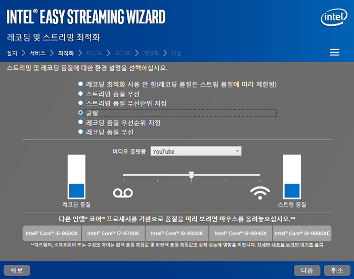 스트리밍에 적합한 고성능 프로세서를 개발하고 있는 인텔에서는 유저들이 보다 쉽게 개인방송을 할 수 있도록 전용 솔루션을 제공하고 있다. 인텔 이지 스트리밍 위자드를 사용하면 PC에 능숙하지 않은 초보자도 쉽게 개인방송을 할 수 있다.