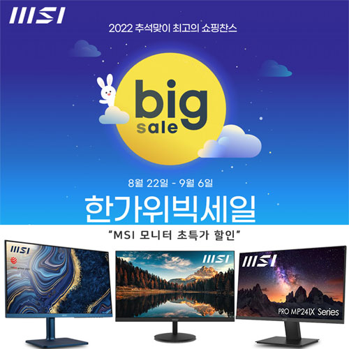 MSI는 민족 대명절 추석을 앞두고, 국내 온라인 쇼핑몰 G마켓과 옥션에서 진행하는 대규모 특가 행사 ‘한가위 빅세일’에 참여한다.