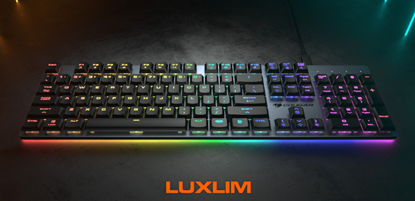 쿠거 LUXLIM 키보드는 CNC 기술이 적용된 알루미늄 합금 프레임으로 샌드 블라스트 표면 처리가 되어 있어 화려하면서도 고급스러운 디자인으로 되어있다. 초슬림 20mm의 바디 두께와 로우 프로파일 무접점 광축 스위치 사용으로, 낮은 손목 각도에서도 편안한 타이핑이 가능하며 기존 기계식 스위치보다 15% 더 빠른 입력이 가능하다.