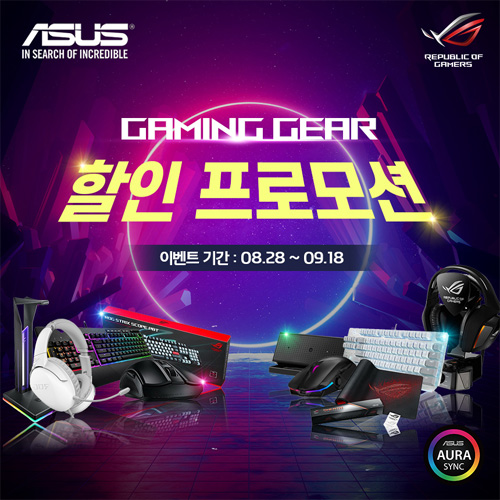 아이티블루는 최고의 명절인 한가위를 맞아 ASUS ROG 게이밍 기어를 NAVER 스마트스토어인 ASUS 공식스토어 에서 최소 15%~ 최대 35% 할인이벤트를 진행한다고 밝혔다. 품목은 마우스, 키보드, 헤드셋, 이어폰, 장패드, 웹캠, 악세서리거치대 등 총 7가지 품목에 38가지 제품이며 기간은 8월 28일부터 9월 18일까지 진행한다. 할인행사 제품을 구매 후 포토상품평을 작성시 3,000원의 네이버 포인트 추가적립, 할인행사를 하지 않는 제품에 대해서 TUF P1 게이밍 마우스 패드를 GIFT로 제공한다.