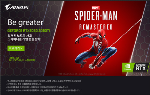 PC 주요 부품 및 노트북 제조사 기가바이트(GIGBAYTE) 국내 공식 수입 유통사 에스라이즈는 엔비디아 지포스 RTX 3080, RTX 3080Ti 그래픽 카드를 탑재한 게이밍 노트북 구매자를 대상으로 스파이더맨 리마스터 게임 번들을 증정하는 프로모션을 진행한다고 밝혔다. 엔비디아 지포스 그래픽 카드는 최고의 게임 경험, 최고의 품질과 성능을 제공할 수 있도록 한다. 프로모션 대상 게이밍 노트북은 ‘AORUS 17G YD(RTX 3080), AORUS 17 YE(RTX 3080Ti)이다.