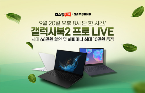 유니씨앤씨는 AMOLED 디스플레이와 초슬림 초경량 디자인으로 뛰어난 휴대성을 자랑하는 삼성 갤럭시북2 프로 / 갤럭시북 S 대상으로 최대 66만원 할인 혜택과 푸짐한 사은품이 증정되는 ‘갤럭시북2 프로’ 라이브 방송을 2022년 9월 20일 20시부터 단 1시간 동안 네이버 스마트스토어를 통하여 진행한다.