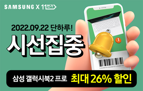 유니씨앤씨는 15.6인치 AMOLED 디스플레이 탑재와 초슬림 초경량 디자인으로 뛰어난 휴대성을 자랑하는 삼성 갤럭시북2 프로 NT950XEW-A51A 모델을 대상으로 최대 39만원 중복 할인과 함께 푸짐한 사은품이 증정되는 ‘시선집중’ 프로모션을 2022년 9월 22일 단 하루 11번가를 통하여 단독 진행한다.