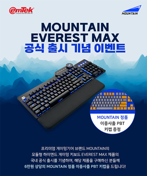이엠텍아이엔씨은 2022년 9월 프리미엄 게이밍 기어 브랜드 MOUNTAIN의 플래그십 제품인 EVEREST MAX를 공식 출시하고, MOUNTAIN 정품 키캡 증정 이벤트를 진행한다고 밝혔다.