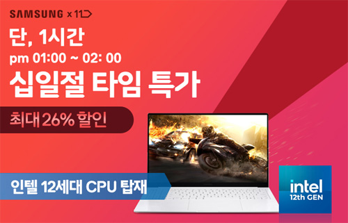 유니씨앤씨는 월간 십일절을 맞아 15.6인치 AMOLED 디스플레이 탑재와 초슬림 초경량 디자인으로 뛰어난 휴대성을 자랑하는 삼성 갤럭시북2 프로 NT950XEW-A51A 모델을 대상으로 최대 38만원 중복 할인과 함께 푸짐한 사은품이 증정되는 ‘타임딜’ 프로모션을 2022년 10월 11일 13시부터 단 1시간 동안, 11번가를 통하여 단독 진행한다.