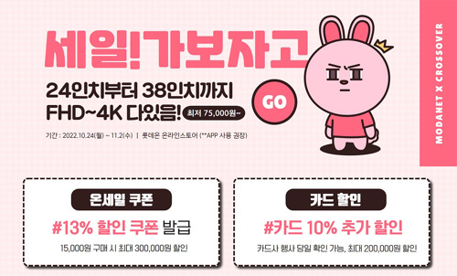 크로스오버는 자사의 인기 게이밍 모니터 51종을 대상으로 롯데온 10월 온세일 롯키데이 특가 할인전을 진행한다고 밝혔다.