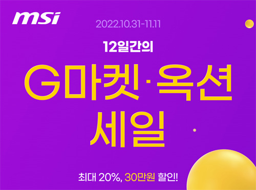 MSI는 국내 유명 오픈마켓, G마켓-옥션에서 열리는 ‘12일간의 G마켓-옥션 세일’ 행사에 참여한다.