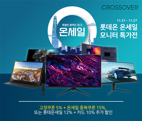 크로스오버는 자사의 인기 게이밍 모니터 98종을 대상으로 롯데온 11월 온세일 특가 할인전을 진행한다고 밝혔다.