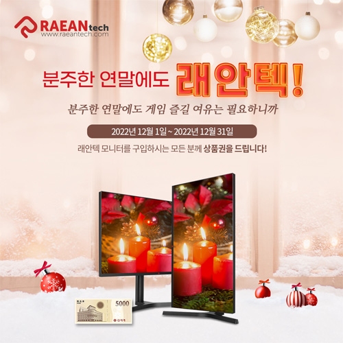 래안텍은 자사 인기 모니터 7종을 대상으로 구매자 전원에게 신세계 상품권을 증정하는 ‘분주한 연말에도 래안텍!’ 이벤트를 진행한다고 1일 밝혔다.