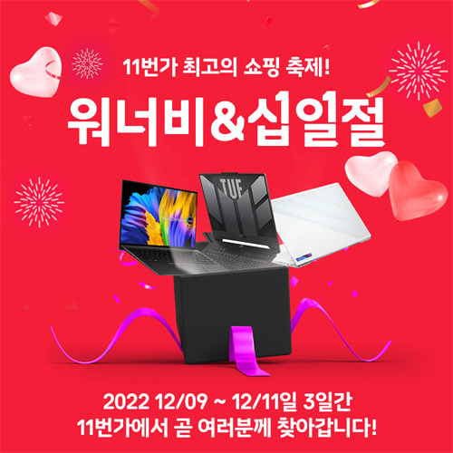 아이티블루는 12월 9일부터 11일까지 주말3일간 11번가에서 진행되는 “워너비행사와 십일절행사” 프로모션을 통해 ASUS 노트북 할인이벤트를 진행한다고 밝혔다. 특히 이번 행사는 게이밍 노트북위주로 판매 예정이며, 중복쿠폰 5%(최대5만원) 할인이 적용된 가격으로 만나 볼 수 있다.