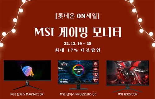 MSI는 롯데그룹의 온라인 종합쇼핑몰 롯데온에서 진행하는 ‘ON세일’에 참여하면서 게이밍 모니터 특가 소식을 전했다.