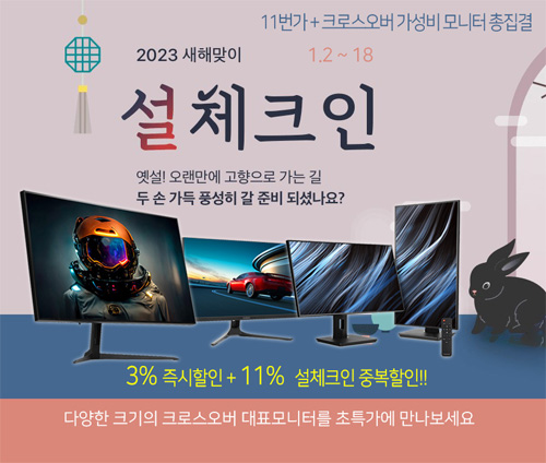 크로스오버는 자사의 인기 게이밍, 포터블 및 고해상도 모니터 44종을 대상으로 2023년 1월 11번가 설체크인 프로모션 기획전을 진행한다고 밝혔다.