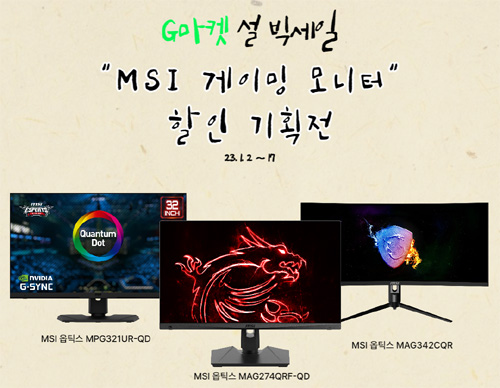 MSI는 국내 대형 오픈마켓인 G마켓에서 진행하는 2023년 신년 맞이 ‘설 빅세일’을 통해 게이밍 모니터 할인을 진행한다.