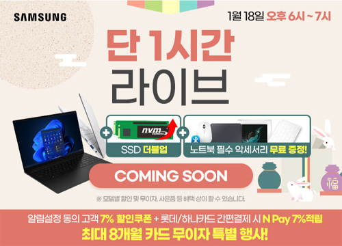 엔씨디지텍은 1월 18일 오후 6시 삼성노트북 갤럭시북2 인기모델들을 대상으로 네이버 쇼핑라이브를 통해 명절선물 특별대전 라이브방송을 진행한다.