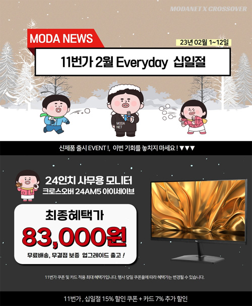 크로스오버는 자사의 인기 게이밍 및 고해상도 모니터 108종을 대상으로 11번가 2023년 2월 에브리데이 십일절 이벤트를 진행한다고 밝혔다.